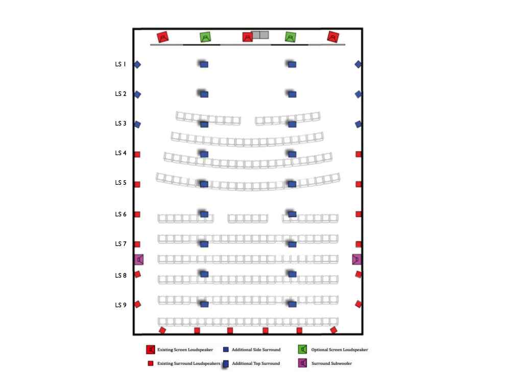 Now that we have seen the constant power pan law, imagine taking that method and panning between every speaker the sound will travel. So, if you look at the figure below, and assume you are panning from LS1 to LS 9, then from LS1 to LS2, LS2 to LS3, and so on will follow the -3dB Pan Law! That is far accurate than panning from the Left to Left Surround (The Red Speakers from LS4 to LS9). Now, it is this accuracy that will be closely maintained when the down mix happens.